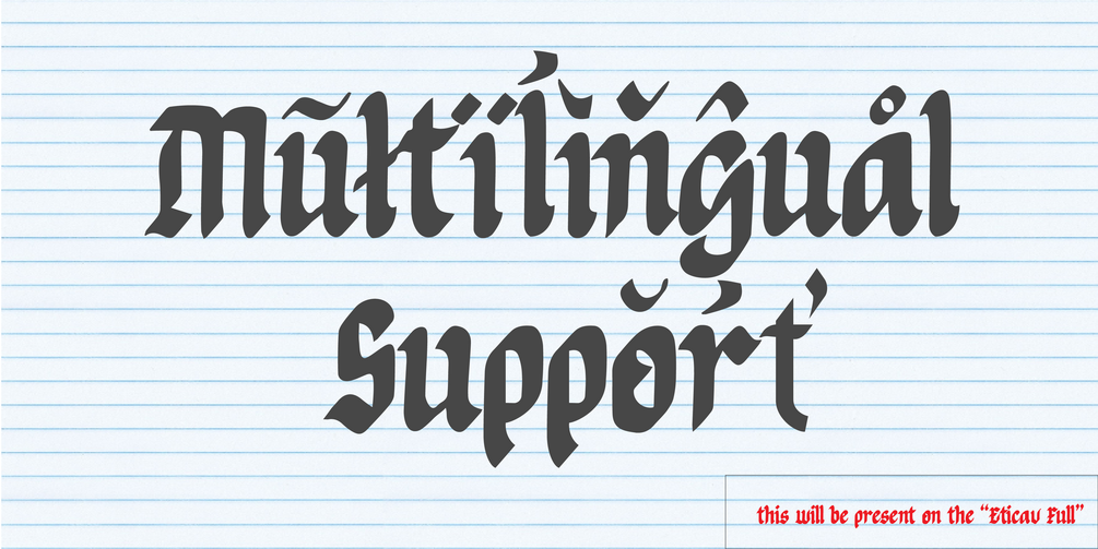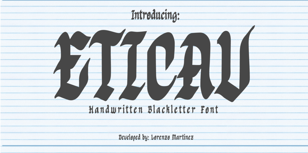 "Eticav" is a handwritten black letter font that is inspired by lettershapes from jeepney, school and public poster signages that is profound around Cavite (my own province )