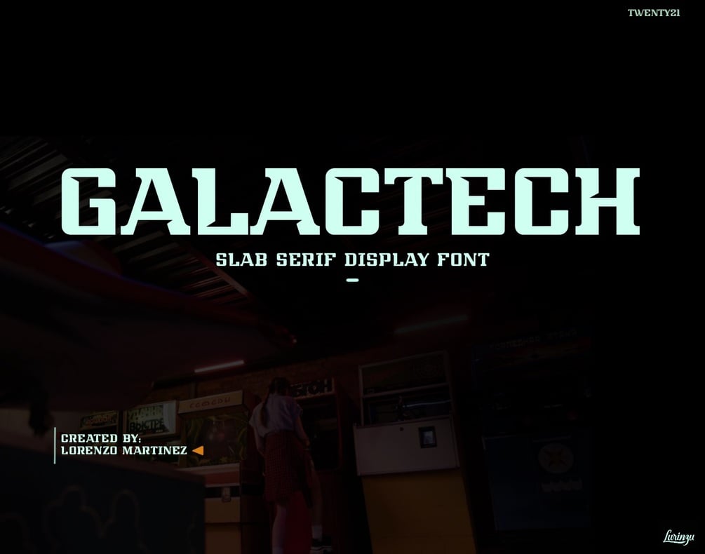GALACTECH is perfect for any school, university, student, retro, gaming, sports, and techno-related design. Perfect for branding, logos, and posters. A techno retro slab serif font, heavily inspired by old retro arcade video games.