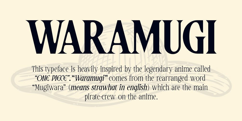 "Waramugi" is a vintage condensed typeface with a mixture of "typewriter vibes" that is inspired by the legendary anime called "One Piece"